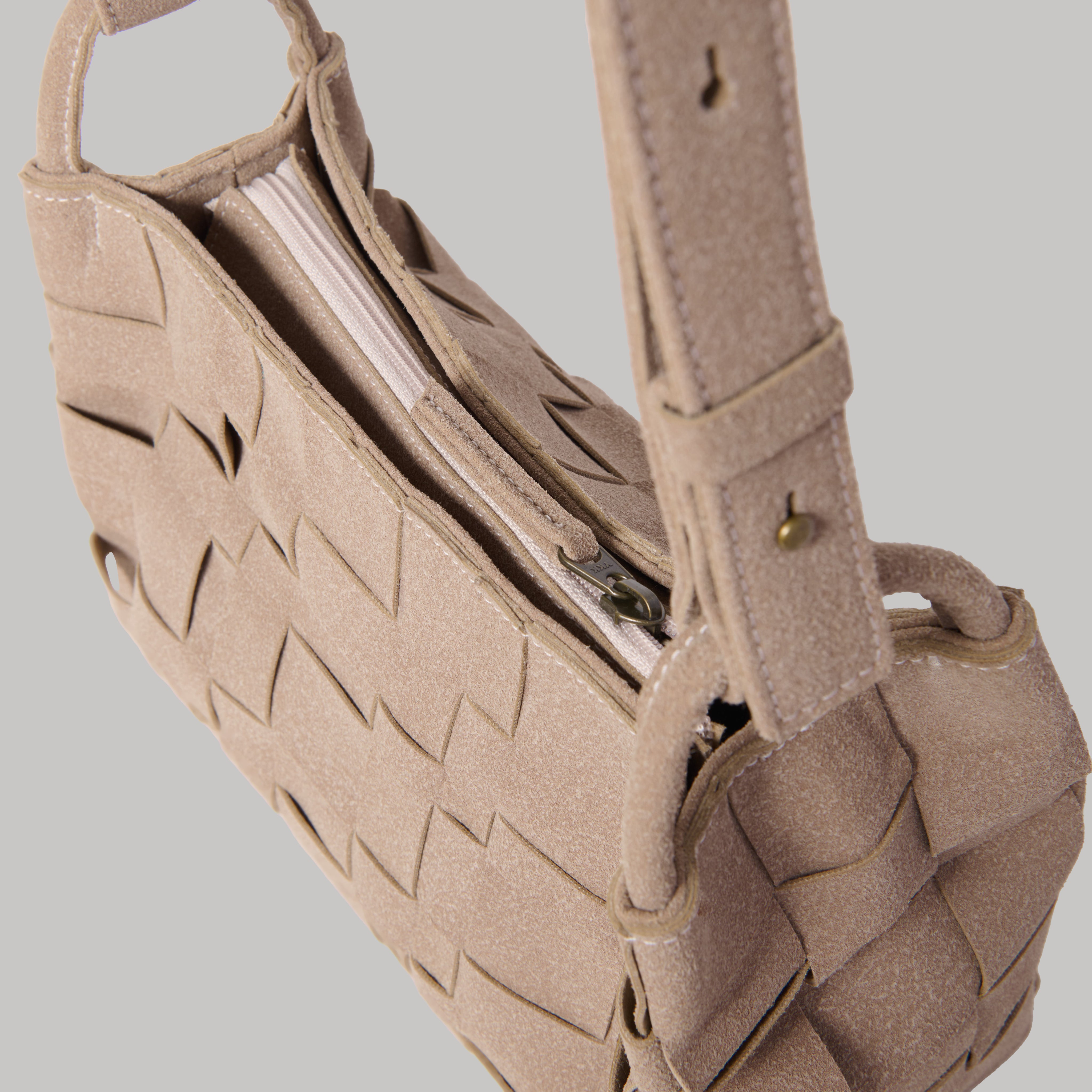Product Details Two Interior Pocket Zip Closure Material: Suede Lining: Polyester Comes with a box and dust bag packaging Colour: Tan Brown Hardware: Bronze Finish Made in: Malaysia