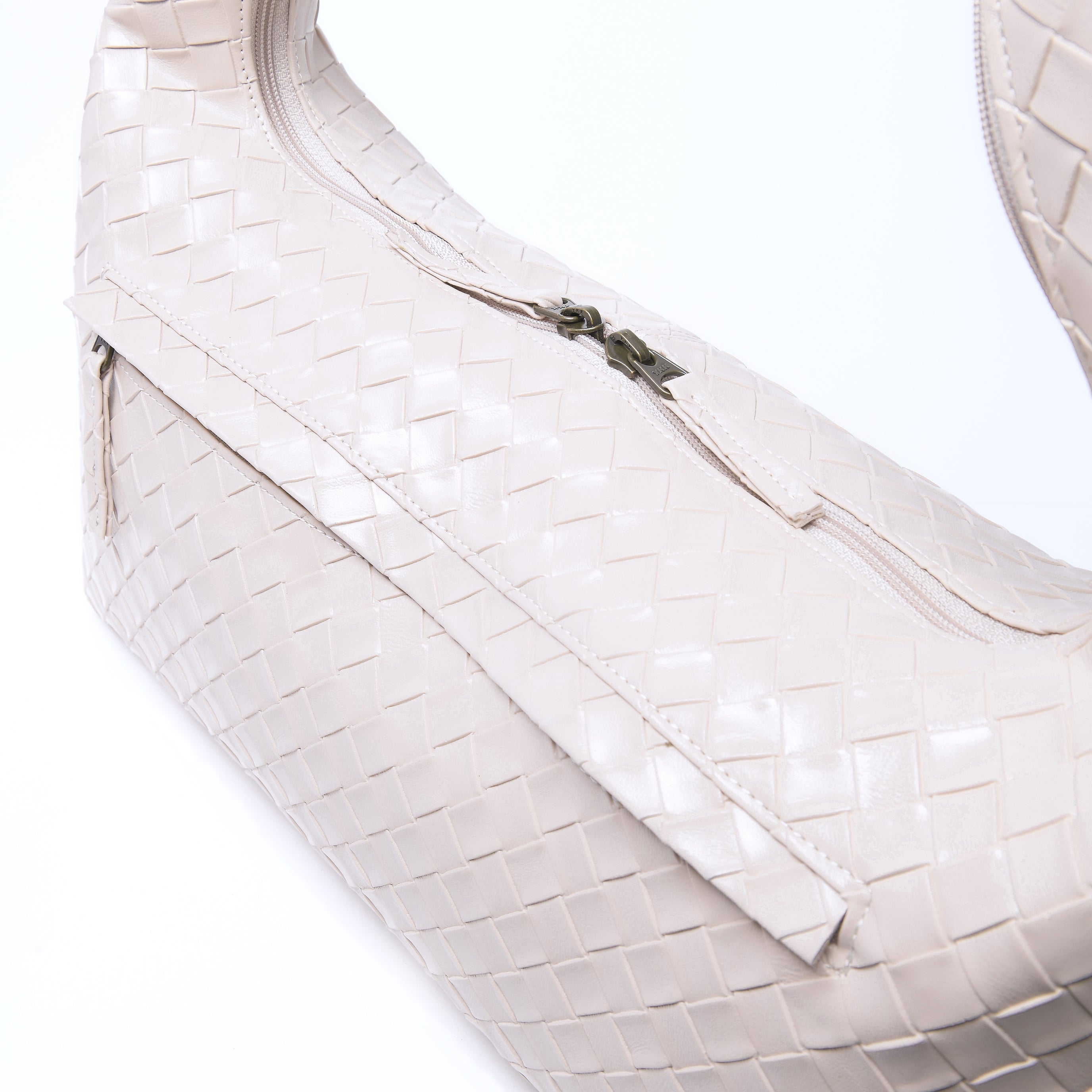 Product Details Two Interior Pocket Exterior Zip Pocket Zip Closure Material: Leatherette Lining: Polyester Comes with a brown box packaging Colour: Nude Mushroom Hardware: Bronze Finish Made in: Malaysia