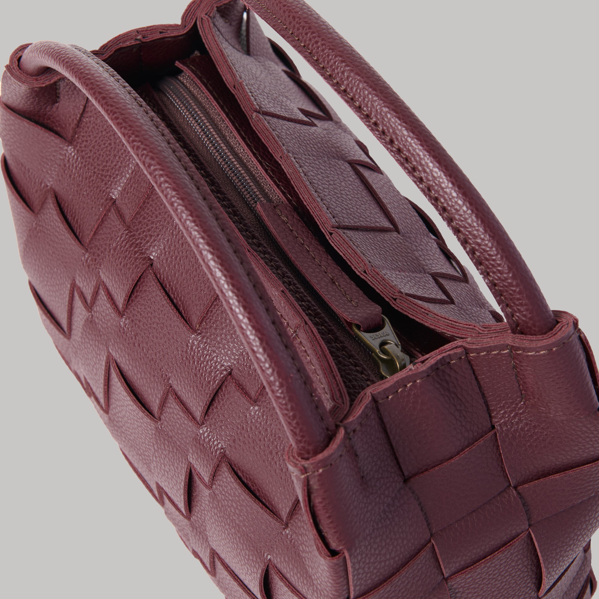 Product Details Two Interior Pocket Zip Closure Material: Leatherette Lining: Polyester Comes with a box and dust bag packaging Colour: Mulberry Hardware: Bronze Finish Made in: Malaysia